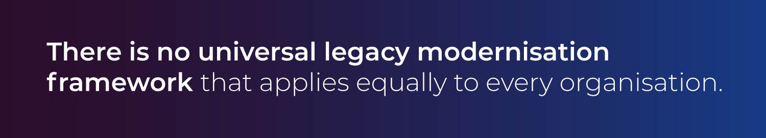 There is no universal framework that applies equally to every organisation. Industry context, regulatory obligations, system criticality and long-term strategy all influence the optimal path. However, several proven strategies commonly form part of a structured modernisation programme.