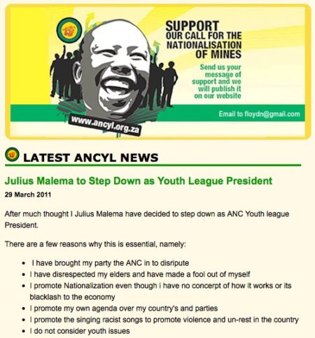 The ANC Youth League’s website has fallen prey to hackers. On Wednesdsay afternoon, the site’s homepage featured a post claiming to be from the “{Blah Blah} protest group” stating that the league’s president